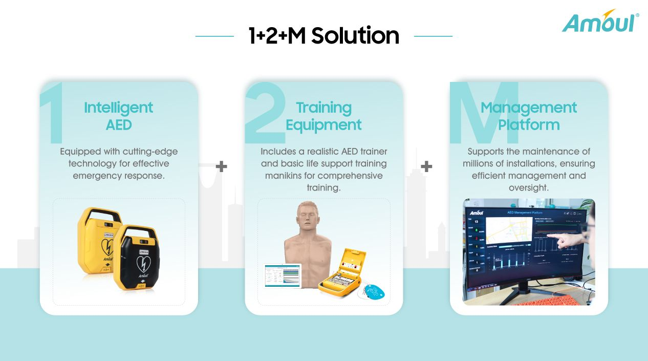 Сердечная остановка — это острое и критическое состояние, которое может возникнуть внезапно и непредсказуемо, в любое время и в любом месте. Это чрезвычайная ситуация, при которой каждая минута имеет решающее значение и требуется немедленное реагирование. В рамках международной стратегии «первая помощь для всех», для повышения уровня общественной подготовки и создания многоуровневой открытой системы экстренного реагирования особенно важно реализовать принцип «золотых четырёх минут». Опираясь на многолетний опыт в области неотложной медицины, компания Amoul® разработала комплексное решение 1+2+N — систему замкнутого цикла общественного реагирования при чрезвычайных ситуациях, направленную на повышение уровня общественной безопасности и эффективности оказания первой помощи.